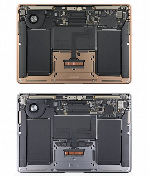 Что же касается других отличий от прошлой версии, к примеру, стоит выделить чуть увеличенный радиатор системы охлаждения. Как уже говорилось, в новой модели MacBook Air проще заменить тачпад и аккумулятор, а всё потому, что прокладка кабелей теперь позволяет сделать это сразу после снятия крышки.