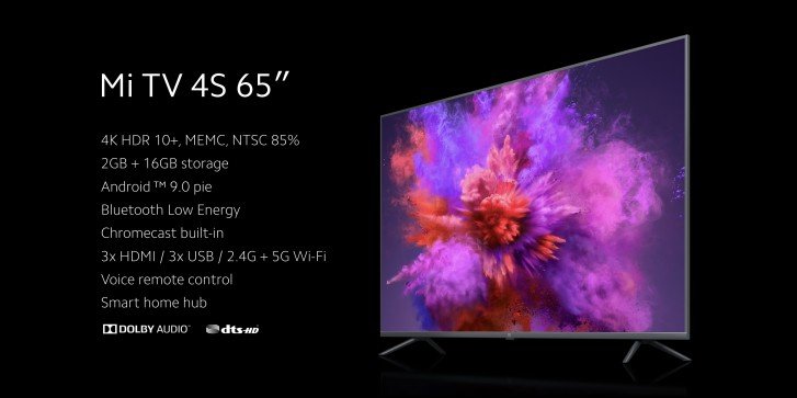 Xiaomi готовится выпустить в Европе свой 65-дюймовый телевизор Mi TV 4S, который оснащен 65-дюймовой панелью разрешением 4K с поддержкой HDR 10+ и технологией MEMC. Он оснащен двумя динамиками мощностью 10 Вт с поддержкой Dolby Audio и DTS-HD, встроенной флэш-памятью 16 ГБ и 2 ГБ оперативной памяти. Телевизор работает под управлением операционной системы Android 9 Pie.