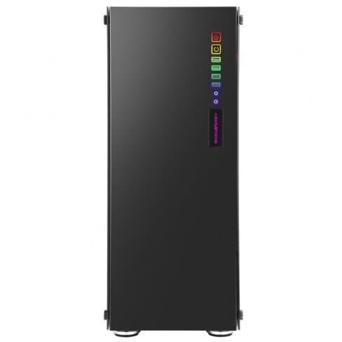 Корпус окрашен в черной матовой краской. Боковая стенка изготовлена из закаленного стекла. Пространство внутри корпуса разделено на два отсека. Сравнительно небольшой верхний отек отведен для блока питания и накопителей. В основном отсеке размещается системная плата типоразмера до ATX и карты расширения. Для них есть девять точек крепления, за счет чего даже в нижний слот можно установить видеокарту, занимающую в ширину больше двух слотов.