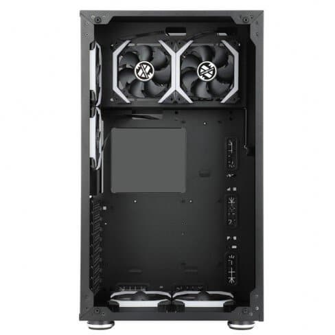 Комплектация включает шесть 120-миллиметровых вентиляторов Abkoncore Spider Spectrum с подсветкой и контроллер вентиляторов, которым можно управлять с помощью радиочастотного пульта дистанционного управления. Подсветкой RGB также украшены элементы панели ввода-вывода: четыре разъема USB 3.1 Type-A, разъемы для наушников и микрофона, и кнопки питания и сброса. Корпус весит 9 кг и стоит 160 евро.