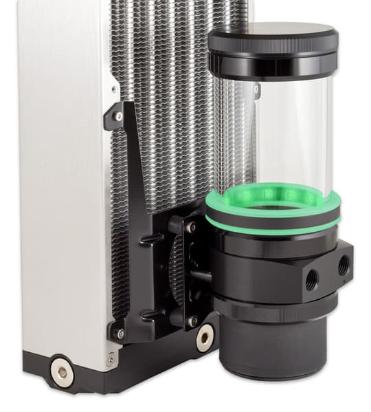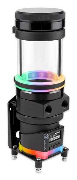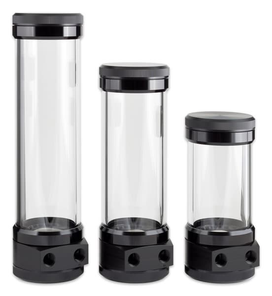 Резервуары версии Pro отличает система выравнивания давления, скрытая в крышке, и кольцо с подсветкой на адресуемых светодиодах. Подсветку можно подключить к собственной системе управления Aqua Computer RGBpx или ко многим системным платам с помощью переходника. Резервуары диаметром 65 мм доступны в трех вариантах высотой 100, 150 и 200 мм. Они предложены как отдельно, так и в комплектах с помпами D5 Next или D5 PWM производства Aqua Computer. Цены начинаются с 70 евро.