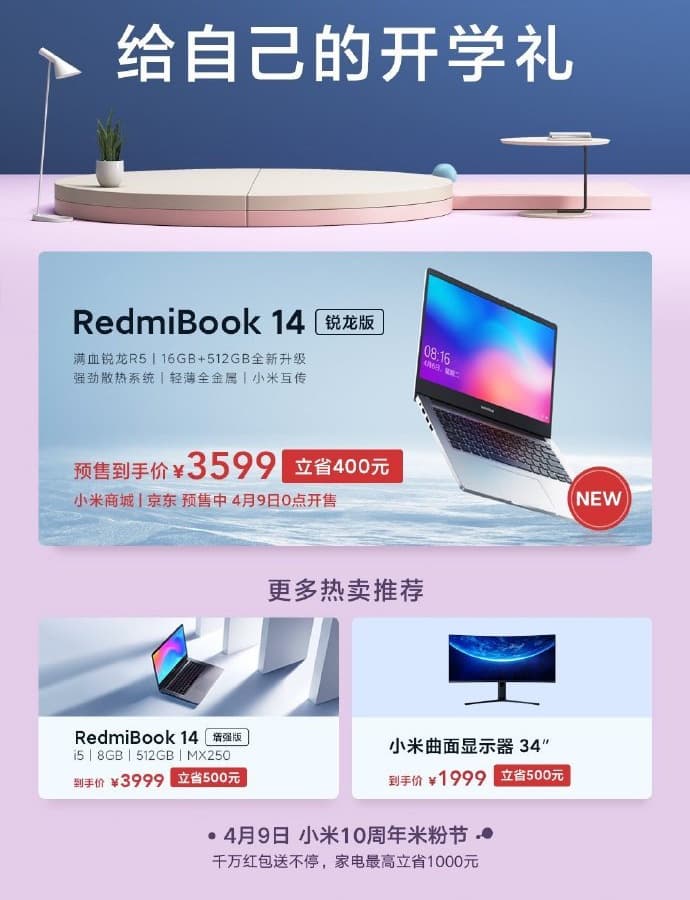 Премьера ноутбуков RedmiBook 14 Ryzen Edition состоялась в октябре прошлого года, но до продаж дело дошло только сейчас. В Китае новинки можно заказать на известном онлайновом ресурсе JD.com с 9 апреля.