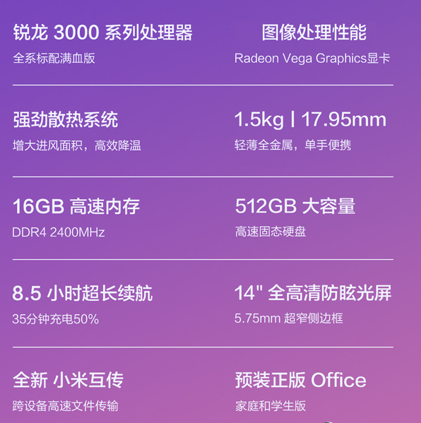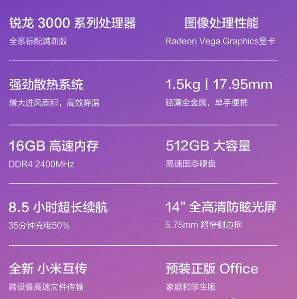 RedmiBook 14 Ryzen Edition – полные аналоги RedmiBook 14 на базе процессоров Intel, только последние заменены тут APU AMD Ryzen 5 3500U и Ryzen 7 3700U. Вариант на базе каждого из этих APU может быть укомплектован 8 или 16 ГБ оперативной памяти, что до объема SSD, то он составил 512 ГБ. Ноутбуки оснащаются 14-дюймовыми экранами разрешением Full HD, заявленная масса – 1,5 кг, толщина корпуса – 17,95 мм.
