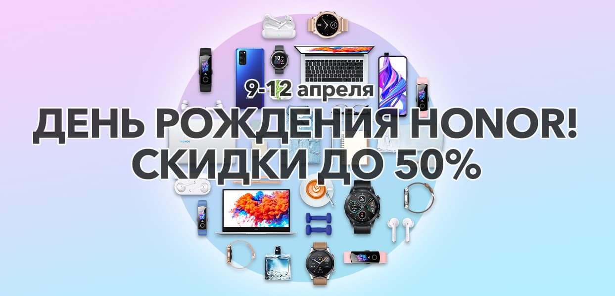 8 апреля бренд Honor отмечает свой официальный день рождения. В честь знаменательной даты бренд предлагает посетителям официального интернет-магазина скидки до 50% на всю линейку продуктов Honor, включая смартфоны, ноутбуки и носимые устройства, а также подарки за покупку. Акция продлится с 9 по 13 апреля на официальном сайте интернет-магазина Honor.