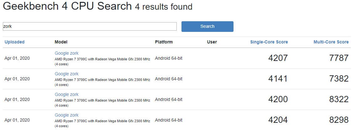 Два неизвестных пока процессора AMD недавно появились в базе данных теста Geekbench. Они носят обозначения Ryzen 7 3700C и Ryzen 3 3250C и работают в составе устройства под кодовым названием Google Zork.