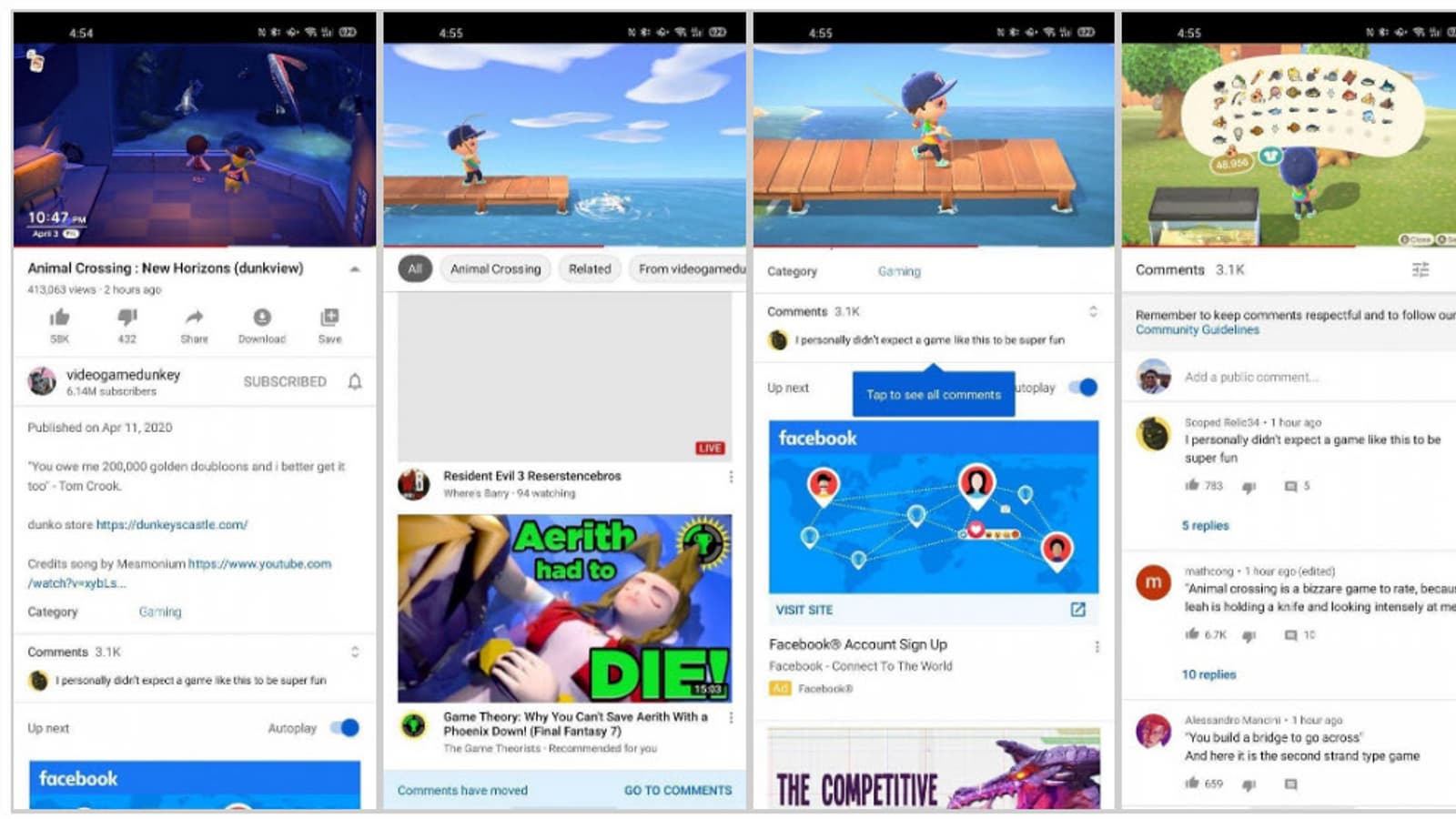 При помощи подобного обновления разработчики хотят облегчить просмотр комментариев под видео. Предыдущая версия YouTube для Android демонстрирует длинный список рекомендуемых видеороликов по схожим темам, а чтобы прочитать комментарии пользователям приходится проматывать окно вниз.