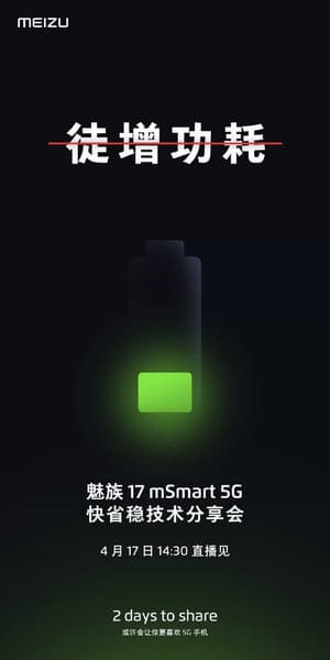 Но у Meizu, похоже, есть какое-то решение проблемы. 17 апреля компания проведёт некое мероприятие, посвящённое технологии mSmart 5G, которая должна обеспечить снижение энергопотребления смартфонов при работе в сетях 5G. Что это за технология и как она будет работать, пока неясно, но она явно будет в новых флагманах компании. К слову, считается, что их тоже представят послезавтра.