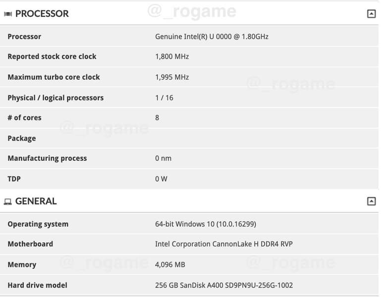 Но были в линейке Cannon Lake и высокопроизводительные мобильные модели. К примеру, некий безымянный CPU с восемью ядрами и поддержкой Hyper-Threading и шестиядерная модель без поддержки HT. Частоты для обеих ПО определяет очень низкими, так что указывать их смысла нет.
