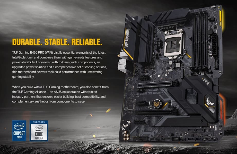 В сети появились изображения системной платы Asus TUF Gaming Z490-Plus WiFi — топовой модели TUF Gaming с процессорным разъемом LGA1200. Ожидается, что плата черного цвета с небольшими вкраплениями желтого будет стоить около 200 долларов.