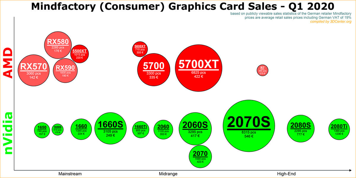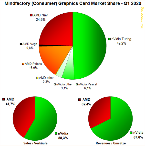 Известный нам в основном по статистике рынка CPU крупный немецкий магазин Mindfactory опубликовал статистику касательно рынка дискретных видеокарт по итогам первого квартала.