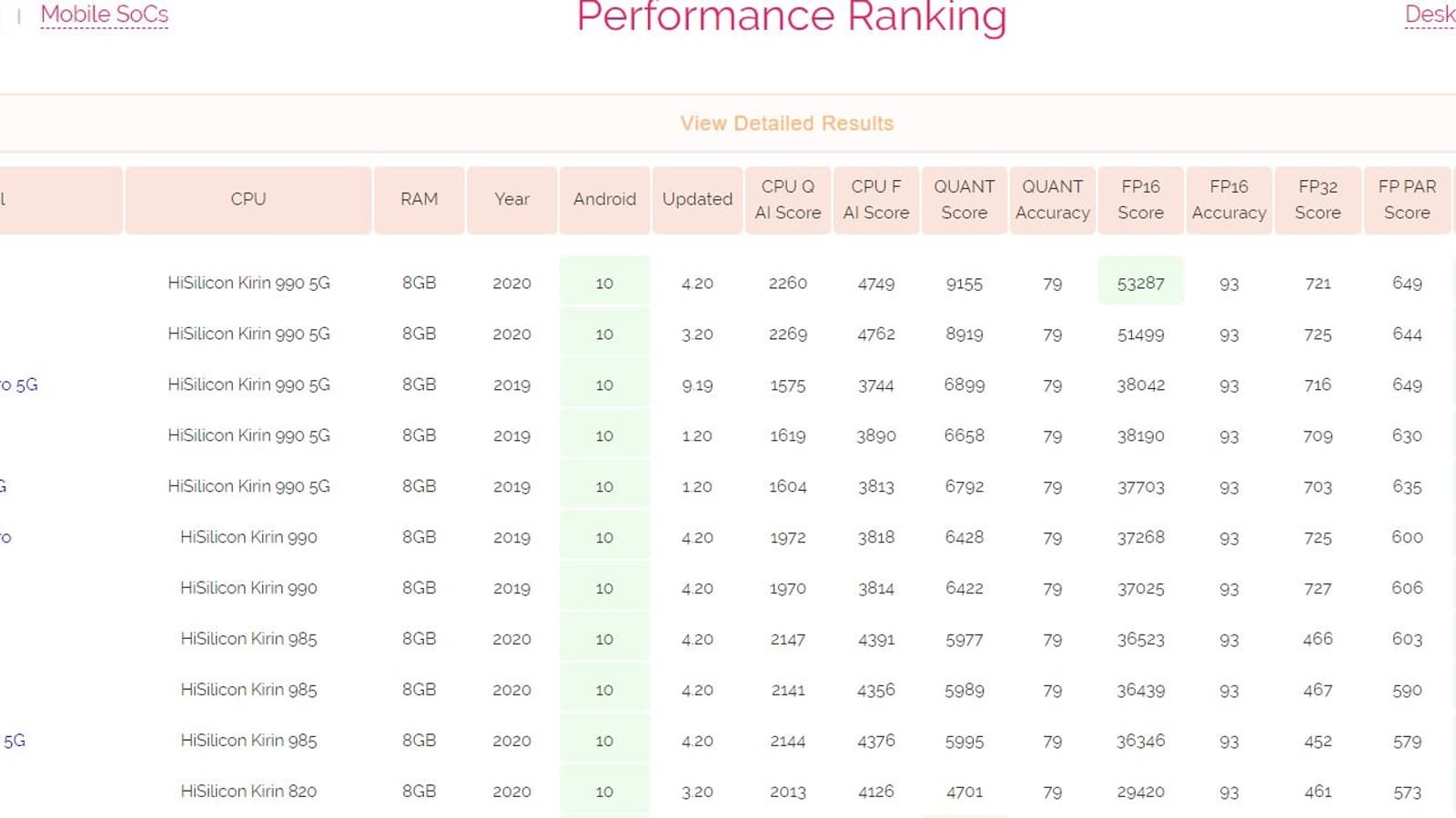 В пятерке лидеров все смартфоны оснащены однокристальной системой Kirin 990 5G, которая получила отдельный вычислительным нейронный процессор с архитектурой DaVinci и трехъядерным дизайном.
