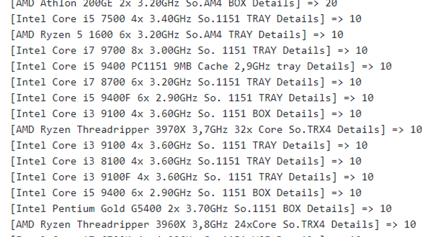 Если же говорить об антирейтинге, к примеру, 32-ядерный Ryzen Threadripper 3970X стоимостью почти 2000 евро купили лишь в вдвое меньшем количестве, чем Core i3-9100 и Core i5-9400, и в том же количестве, что и Pentium Gold G5400.