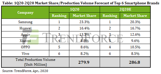 Специалисты аналитической компании TrendForce пересмотрели свой прогноз относительно объема выпуска смартфонов в этом году. Они полагают, что за год будет выпущено 1,24 млрд устройств, что на 11,3% меньше, чем в 2019 году. Сокращение связано с ослаблением спроса, нарушениями в производстве и цепочке поставок из-за пандемии COVID-19.