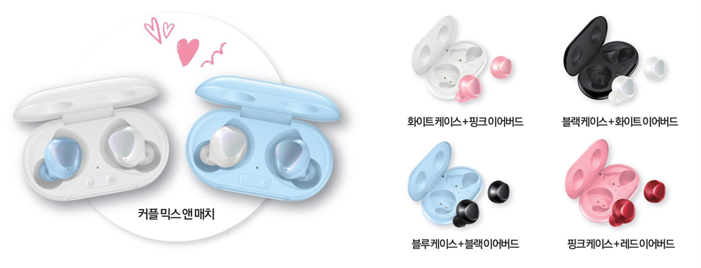 Предлагается не просто выбрать беспроводные наушники Galaxy Buds+ доступных цветовых вариантов, а смешать наушники разных цветов в один комплект, а также взять футляр любой расцветки.