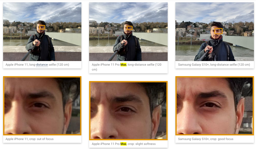 Оба смартфона Apple по качеству съёмки селфи остались позади Huawei P40 Pro, Huawei nova 6 5G, Samsung Galaxy S20 Ultra, Samsung Galaxy Note 10+ 5G, Asus ZenFone 6, Samsung Galaxy S10 5G, Samsung Galaxy S10+ и Huawei Mate 30 Pro.