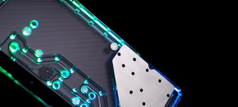 Резервуар-распределитель изготовлен из прозрачного пластика и украшен лентой с 23 светодиодами D-RGB. Чтобы яркие точки светодиодов не били в глаза, они прикрыты алюминиевой пластиной. Лента подключается к системной плате или концентратору EK-Loop Connect. Она совместима с распространенными системами управления подсветкой. Габариты изделия равны 201 х 66 х 413 мм.