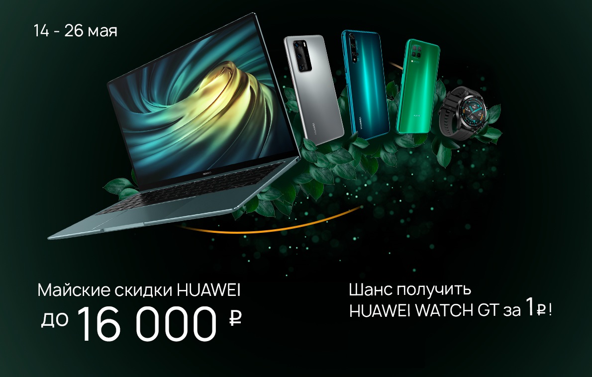 Акция уже стартовала и продлится до 26 мая. Спецпредложения распространяются на смартфоны, планшеты, ноутбуки, и носимые устройства Huawei.