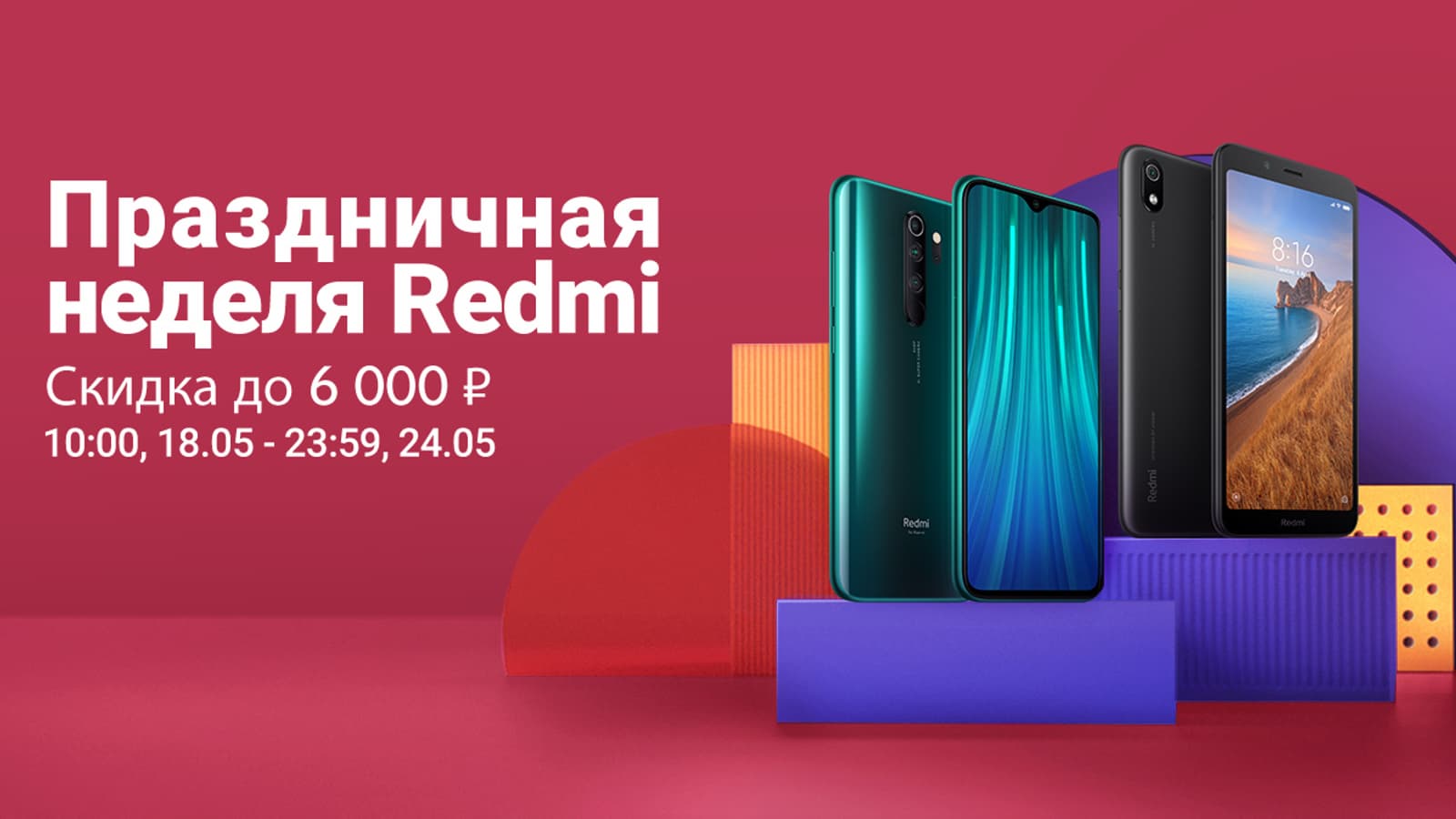 Акция под названием «Праздничная неделя Redmi» стартует в 10:00 по московскому времени 18 мая и продлится до 23:59 по московскому времени 24 мая. Производитель обещает скидки до 6 тысяч рублей, а также различные подарки. Впрочем, цены снижены не только на Redmi, но и на смартфоны и другие продукты Xiaomi.