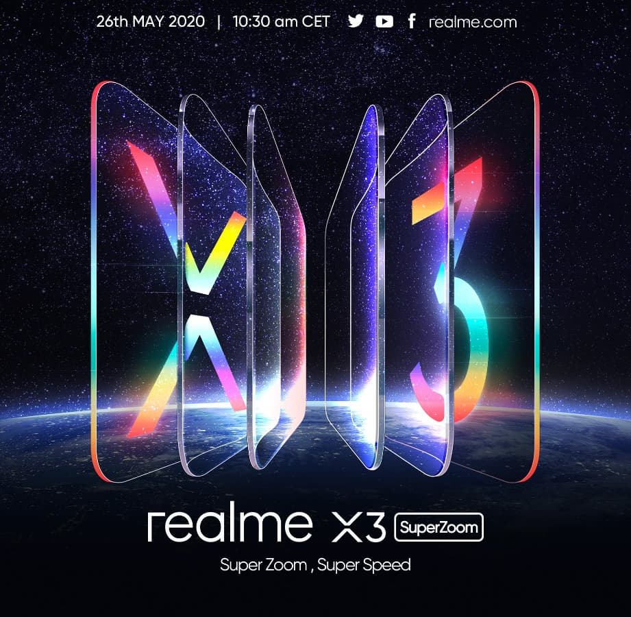 Следующий постер подтверждает, что презентация нового смартфона Realme X3 SuperZoom в Европе состоится уже 26 мая, то есть ровно через неделю. Постер был опубликован на официальной страничке Realme в Twitter.