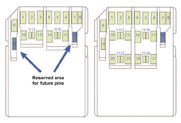 SD Express использует хорошо известную спецификацию PCIe 4.0 и новейшую спецификацию NVMe (вплоть до 1.4), определенную PCI-SIG и NVM Express соответственно. Спецификация SD 8.0 предоставляет две опции скорости передачи для карт памяти SD Express. Две скорости передачи данных достигаются за счет поддержки архитектур PCIe 3.0 x2 или PCIe 4.0 x1 со скоростью до ~2 ГБ/с и технологии PCIe 4.0 x2 со скоростью до 4 ГБ/с. Карты SD Express с архитектурой PCIe 4.0 x1 используют тот же форм-фактор, который определен для карт спецификации SD 7.0 со вторым рядом выводов, для обеспечения скорости передачи до 2 ГБ/с. Карты SD Express, поддерживающие две линии PCIe (PCIe 3.0 x2 или PCIe 4.0 x2), имеют три ряда контактов.