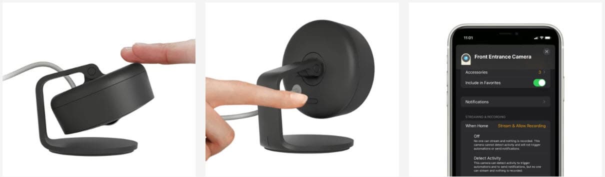 Камера соответствует степени защиты IP64, что делает ее пригодной для использования во дворе дома. Производитель добавил возможность наклонить камеру вниз, ограничив ее поле зрения. Также предусмотрена аппаратная кнопка на задней панели, которая позволяет отключить камеру и микрофон.