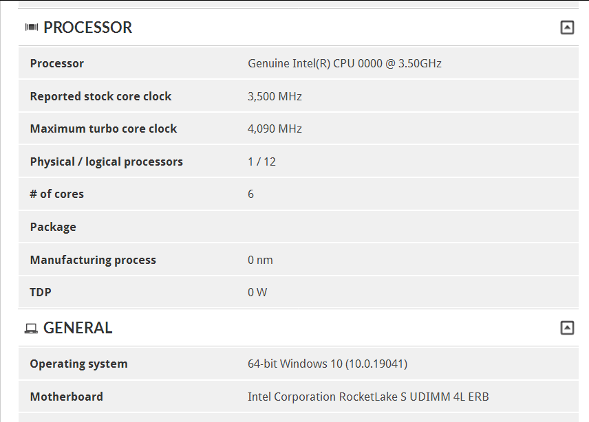 Инсайдер с псевдонимом APISAK обнаружил первое появление процессора Intel линейки Rocket Lake в бенчмарках. Если точнее, в 3DMark. ПО не определило название модели, но зато указало основные данные.