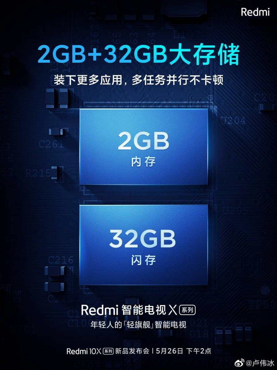 Постер подтверждает, что телевизоры будут оснащены 2 ГБ оперативной и 32 ГБ флэш-памяти. Лидер Redmi подтвердил, что у пользователей будет достаточно свободного пространства для установки любых приложений.