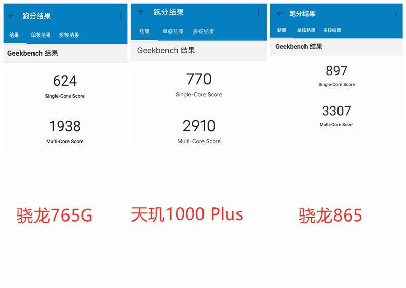 Неделю тому назад дебютировал первый в мире смартфон на однокристальной платформе MediaTek Dimensity 1000 Plus (им оказался Iqoo Z1), а сегодня вышел первый подробный обзор устройства. Немалая часть материала в нем посвящена однокристальной системе и ее производительности в сравнении с конкурентами из стана Qualcomm – топовой Snapdragon 865 и среднеуровневой Snapdragon 765G. Правда, как показали результаты тестов (см. изображения ниже), Snapdragon 765G совсем не конкурент Dimensity 1000 Plus.