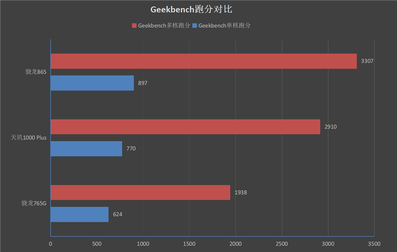 Как видно, Dimensity 1000 Plus по процессорной производительности не сильно уступает Qualcomm Snapdragon 865, особенно в многопоточном тесте. В однопоточном разница между Snapdragon 865 и Dimensity 1000 Plus примерно соответствует разнице между самой Dimensity 1000 Plus и Snapdragon 765G. В тесте графики бенчмарка GFXBench Dimensity 1000 Plus отстает от Snapdragon 865 на величину от 5 до 12 процентов. Snapdragon 765G со своим GPU Adreno 620 тут явный аутсайдер.
