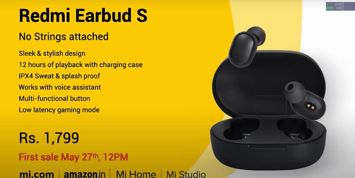 Параллельно с основной презентацией Redmi на индийской страничке компании в YouTube показали беспроводные наушники Redmi Earbuds S.