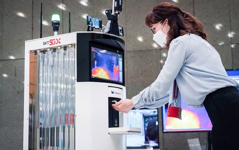 Компании SK Telecom и Omron Electronics Korea представили разработку, призванную помочь сдержать распространение коронавируса. Это автономный робот, который поддерживает подключение 5G.