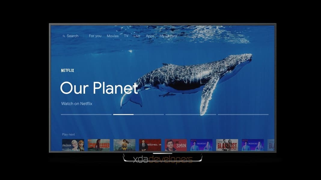 Также видео продемонстрировало интерфейс и часть пульта дистанционного управления с кнопкой доступа к голосовому помощнику Google Assistant. Интерфейс Android TV изменился и больше ориентирован на контент.