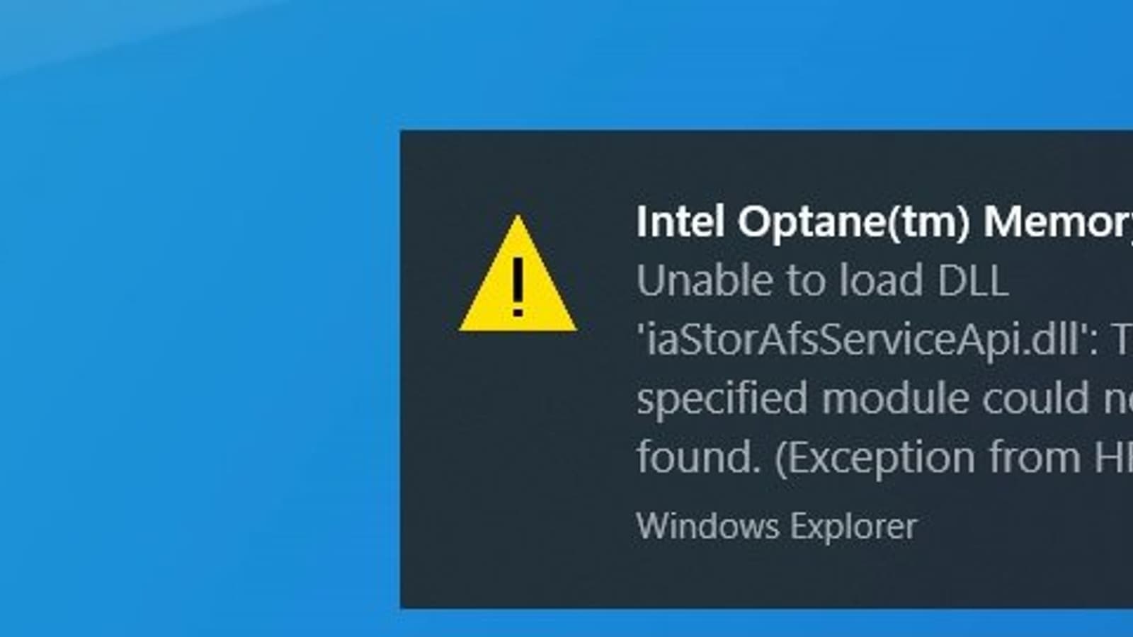 Для решения проблемы можно попробовать удалить Intel Optane Pinning Explorer Extensions, отключить Intel Optane и перезагрузить ПК, а затем активировать Intel Optane и ещё раз перезагрузить ПК. Если ошибка всё ещё выдаётся, то придётся удалить Windows 10 May 2020 Update.