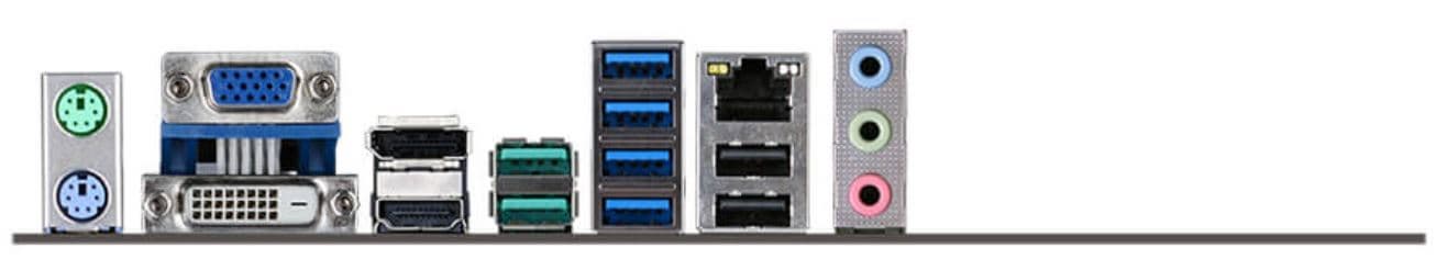 Список слотов расширения включает два слота PCIe x16, один из которых работает как PCIe Gen3 x16, а второй — как PCIe Gen 2.0 x4. Кроме того, есть по одному слоту PCIe Gen2 x1 и PCI. Из двух слотов M.2 один предназначен для SSD с интерфейсом SATA, а второй — для модуля беспроводной связи. Возможность подключения накопителей обеспечена наличием четырех портов SATA 6 Гбит/с. В оснащении можно выделить порт Gigabit Ethernet на контроллере Realtek RTL8111GN, шестиканальный звуковой кодек Realtek ALC662 , два порта USB 3.2 Gen 2, шесть портов USB 3.2 Gen1 (два выведены на штырьковые разъемы), пять портов USB 2.0 (три выведены на штырьковые разъемы), видеовыходы HDMI, DisplayPort, DVI-D и VGA (D-Sub).