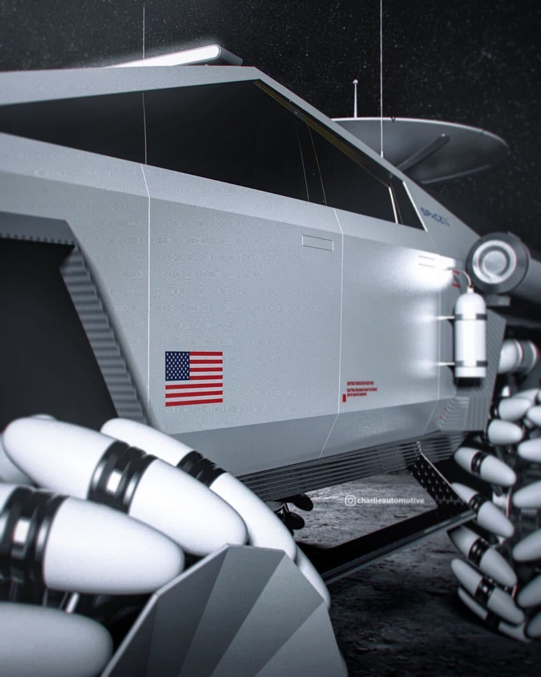 Таким Cybertruck-луноход видит дизайнер, скрывающийся в Инстаграм под ником Charlie Automotive. Электрический пикап Tesla для обычной жизни очень брутален, а вот в таком космическом антураже он словно в своей тарелке. Концепт, кстати, может оказаться с реальной перспективой — все-таки SpaceX и Tesla имеют тесные родственные связи, и когда речь зайдет о таком виде космического транспорта, за основу вполне может быть взят Cybertruck. Правда, вероятно, уже следующих поколений.