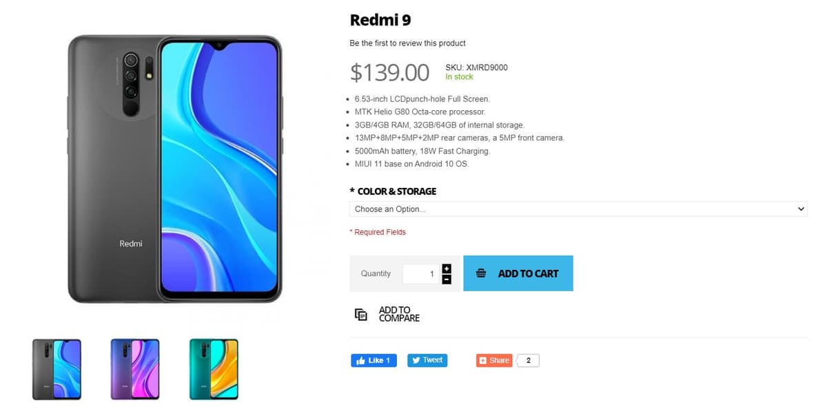 Смартфон Redmi 9 стал доступен для предварительного заказа на сайте филиппинского интернет-магазина Lazada, который подтвердил характеристики устройства и указал его цену.