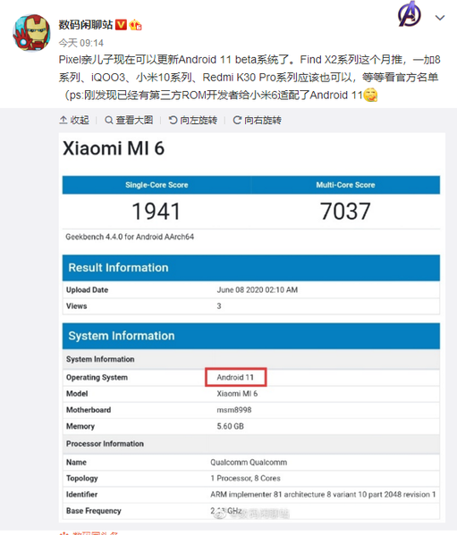 Интересно вот что: Google только сегодня официально выпустила первую бета-версию Android 11, но Mi 6 с этой ОС засветился в бенчмарке еще три дня тому назад. Энтузиасты установили свежайшую ОС на старый смартфон за несколько дней до того, как это смогли сделать пользователи Google Pixel. Один только этот факт наглядно демонстрируют, насколько трепетно пользователи относятся к Mi 6.