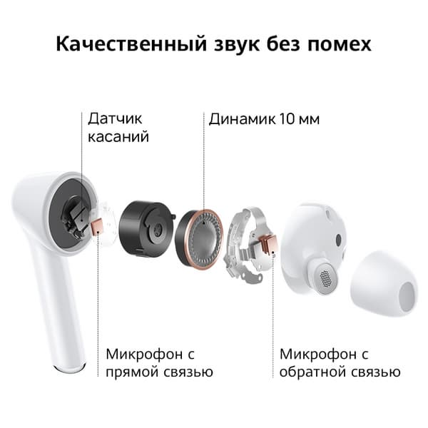 Наушники оснащаются тремя микрофонами для подавления шумов. Как поясняет производитель, два внешних микрофона распознают голос пользователя на фоне окружающего шума, а один внутренний микрофон — улавливает голос внутри ушных каналов, повышая общее качество звучания во время вызовов. Заявлено шумоподавление до 32 дБ.