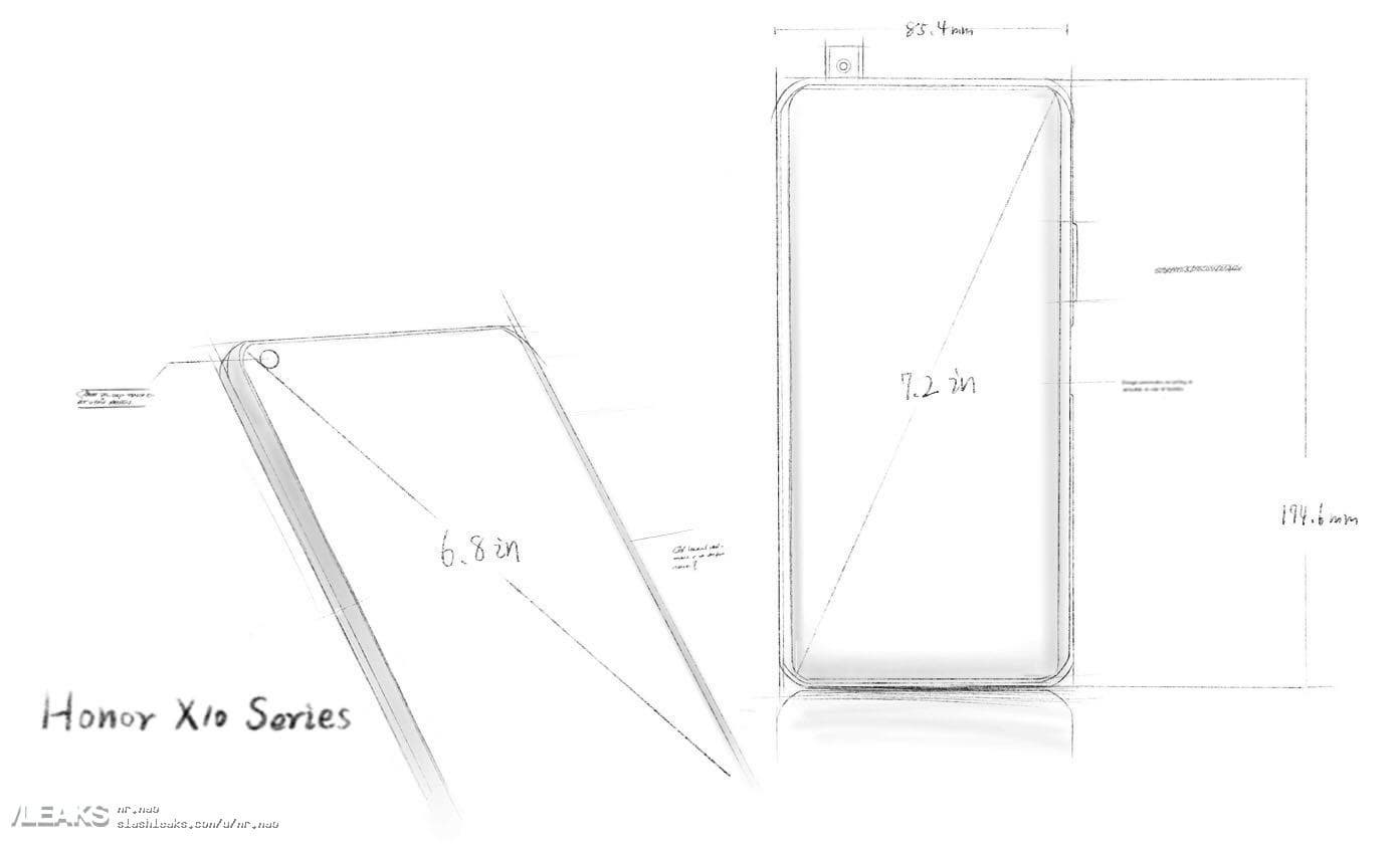 Теперь же появились эскизы, на которых, предположительно, запечатлены Honor X10 Max и Honor X10 Max Pro. Изображение подтверждает, что смартфоны этой линейки получат разный дизайн, меньшая версия оснащена врезанной в экран фронтальной камерой, тогда как у старшей селфи-камера является выдвижной.