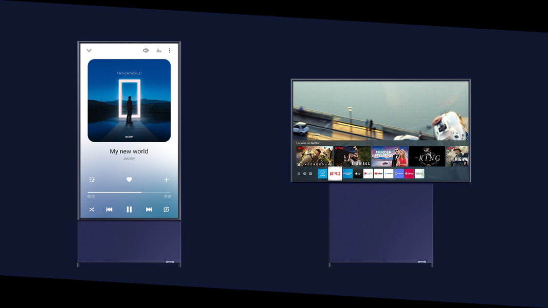 Телевизор Samsung The Sero может поворачиваться на 90 градусов, то есть его можно использовать как горизонтально, так и вертикально по аналогии со смартфонами и планшетами. Это было сделано для того, чтобы пользователи могли просматривать разнообразный контент, в том числе из социальных сетей, YouTube и так далее в любой ориентации экрана. Пользователям доступны уникальные способы управления, например, чтобы продублировать на телевизор изображение со смартфона, достаточно просто прикоснуться телефоном к рамке телевизора. Также телевизор может автоматически поворачиваться, подстраиваясь под ориентацию смартфона.
