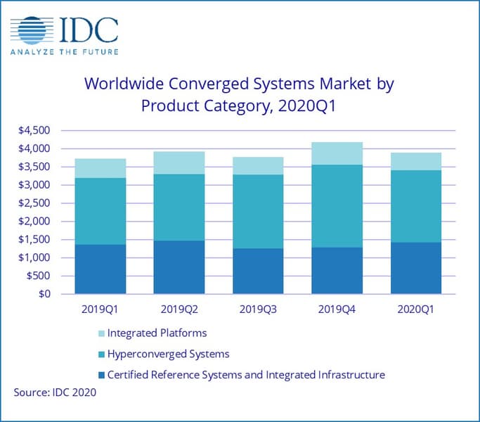 Рынок конвергентных систем в первом квартале 2020 года достиг 3,9 млрд долларов. Это на 4,5% больше показателя такой же период прошлого года. Эти данные содержатся в отчете, подготовленном специалистами аналитической компании IDC. Под конвергентными системами аналитики IDC понимают системы, включающие вычислительные, сетевые ресурсы и ресурсы хранения данных. Это готовые, протестированные решения, поддерживающие виртуализацию и оптимизированные для различных задач. Такие системы легко встраиваются в имеющуюся инфраструктуру благодаря программно-определяемой специализации.