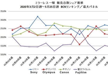 В мае продажи беззеркальных камер в Японии составили 38,0% по сравнению с маем 2019 года