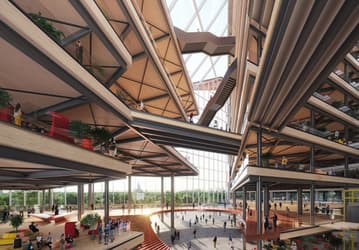 Сотрудникам будут доступны столовые, кофейни, спортивные залы и бассейн, а также просторная терраса на крыше