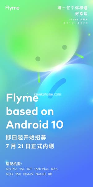 Сегодня было объявлено о том, что оболочка Flyme 8 на операционной системы Android 10 будет доступна участникам бета-тестирования, начиная с 21 июля. В дополнение к серии Meizu 17 к участию в бета-тесте допустят пользователей Meizu 16S Pro, Meizu 16S, Meizu 16T, Meizu 16th Plus, Meizu 16th, Meizu 16Xs, Meizu 16X, Meizu Note9, Meizu Note9 и Meizu X8.