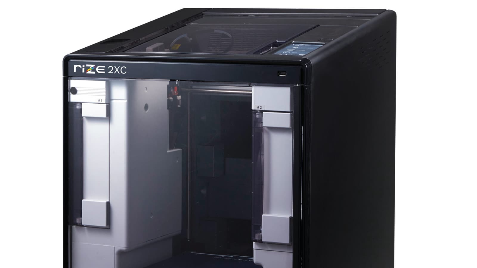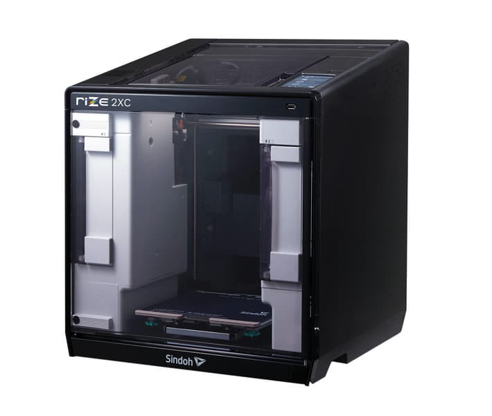 В принтере Rize 2XC используется печатающий узел с двумя экструдерами производства южнокорейской компании Sindoh. Он был доработан для использования с материалами линейки Rize Rizium. Это материалы «инженерного уровня», работа с которыми не сопровождается вредными выбросами, влагостойкие, требующие минимальной обработки после печати и пригодные для переработки. Заявлена также совместимость с PLA, ABS, Flexiible, PVA и другими материалами.