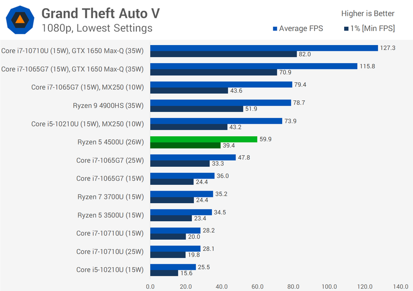 Что же касается iGPU Vega 6, его достижения сильно зависят от конкретной игры, но он почти всегда ощутимо быстрее графического ядра в Core i7-1065G7 и в половине случаев быстрее дискретной GeForce MX250.