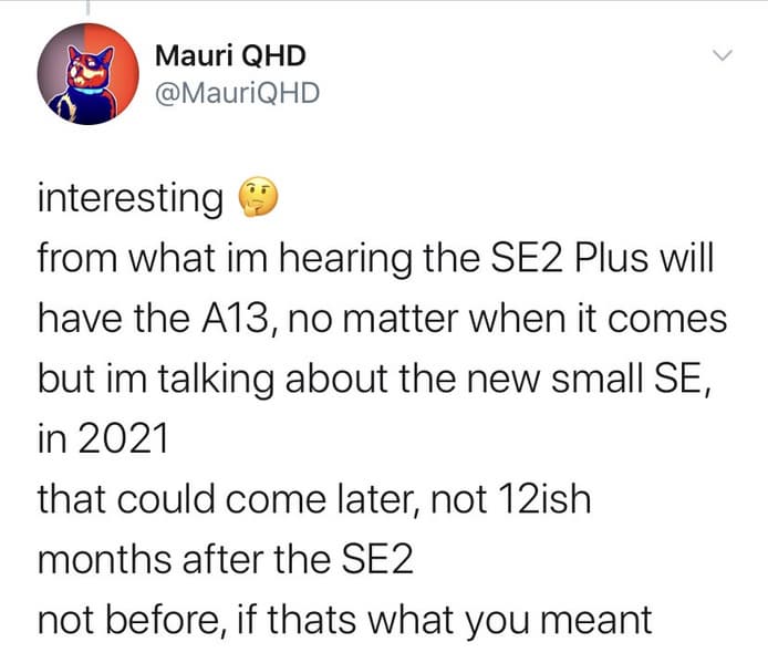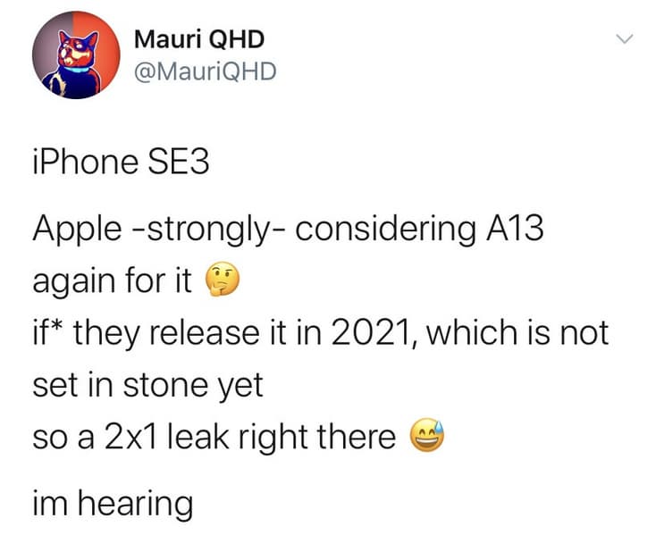 Об этом сообщил один из информированных пользователей в Twitter. По его словам, Apple рассматривает A13 для своего перспективного iPhone SE 3, если он все-таки появится в следующем году. И эта же платформа будет использоваться в большом iPhone SE — увеличенной версии нынешней модели.