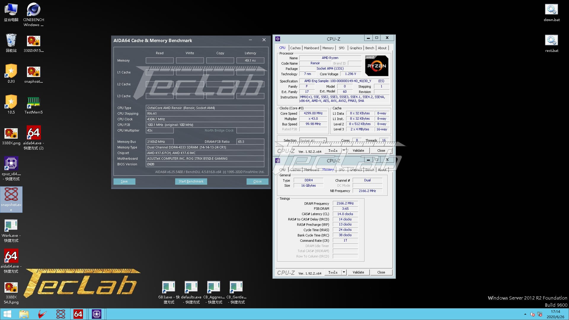 На тестовом стенде APU работал на системной плате Asus ROG Strix B550-E Gaming с памятью, работающей на частоте 4333 МГц. Владельцам этого APU также удалось разогнать его до частоты 4,35 ГГц, при этом задержка памяти составляла 47,6 нс при таймингах памяти CL14 14-13-13-28. При наличии водяного охлаждения, кроме прочего, удалось добиться задержки в 45 нс, что является отличным показателем для AMD Renoir.