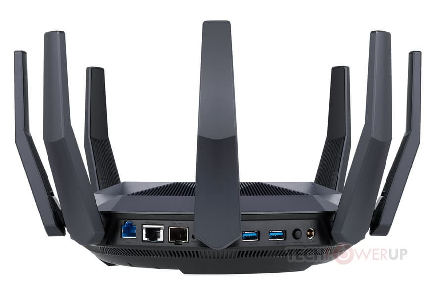 Проводная часть Asus RT-AX89X включает две восходящие линии 10 GbE, одну восходящую линию 1 GbE и восемь нисходящих линий 1 GbE. Порты 10 GbE могут быть индивидуально перенастроены как нисходящие каналы локальной сети. Оснащение роутера также включает два порта USB 3.1 (5 Гбит/с), к которым можно подключать сотовые модемы, запоминающие устройства и другие устройства с интерфейсом USB.