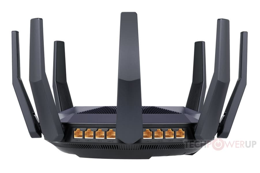 Компания Asus представила игровой маршрутизатор RT-AX89X. Устройство с восемью антеннами соответствует спецификации 802.11ax (Wi-Fi 6) и обеспечивает пропускную способность 4804 Мбит/с в диапазоне 5 ГГц и 1300 Мбит/с в диапазоне 2,4 ГГц, то есть суммарно — 6104 Мбит/с. Работая по стандарту 802.11ac, маршрутизатор обеспечивает скорости до 4333 Мбит/с в диапазоне 5 ГГц и до 1000 Мбит/с в диапазоне 2,4 ГГц. Роутер поддерживает новейшие функции безопасности, включая WPA3-Personal и WPA2-Enterprise.